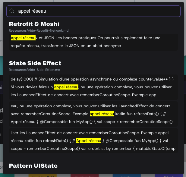 Utilisez CMD + K pour rechercher dans tout le cours et retrouver rapidement où on parle d’une notion