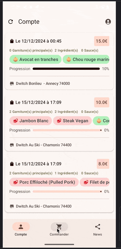 • Il faut charger les ingrĂ©dients disponibles et les magasins disponibles depuis le serveur avant de pouvoir commander